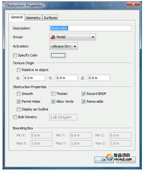 在全部維度上至少有一個(gè)柵格單元厚的障礙物。FDS僅允許對(duì)這些類型的障礙物進(jìn)行傳熱計(jì)算。此外,只有這些障礙物可以使用通風(fēng)孔。