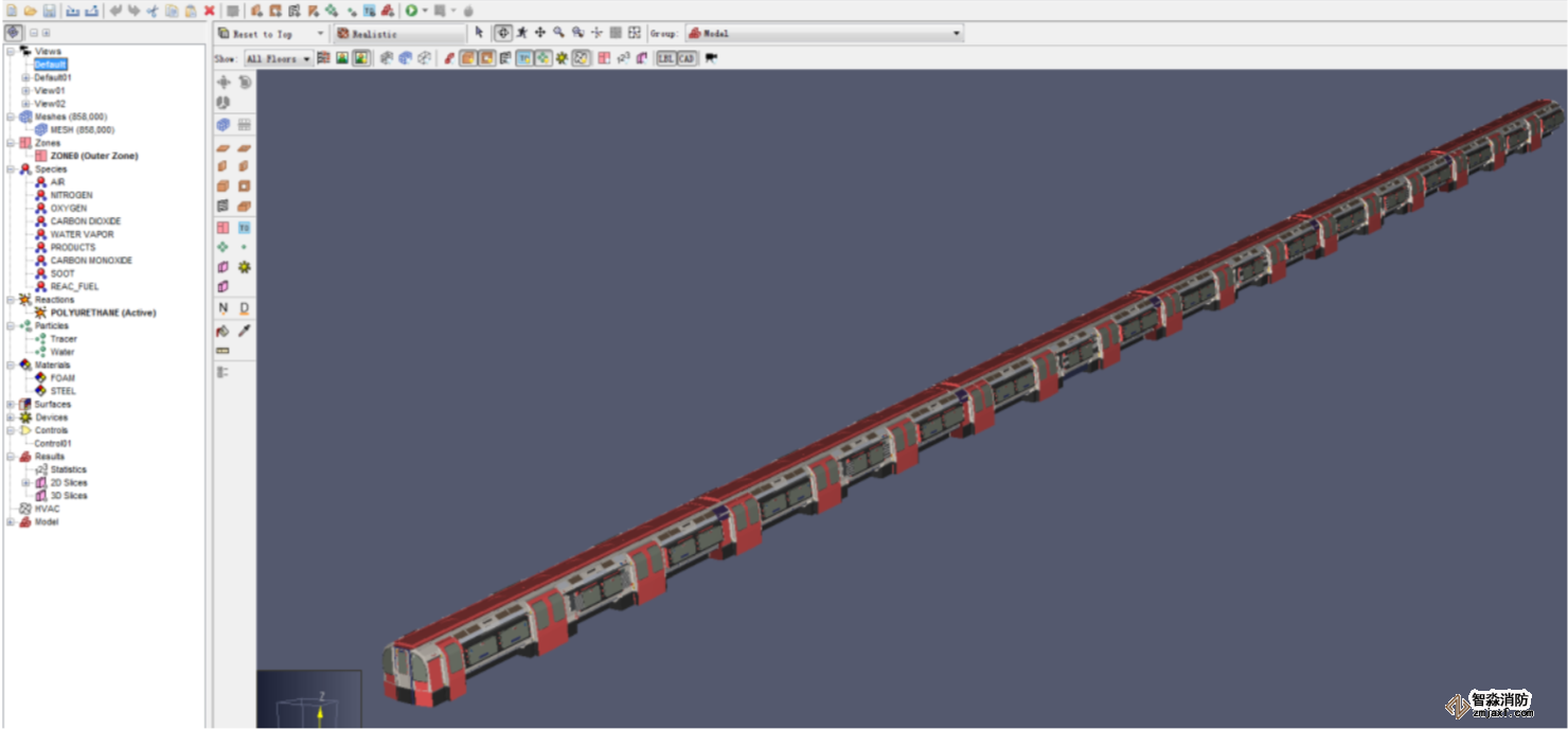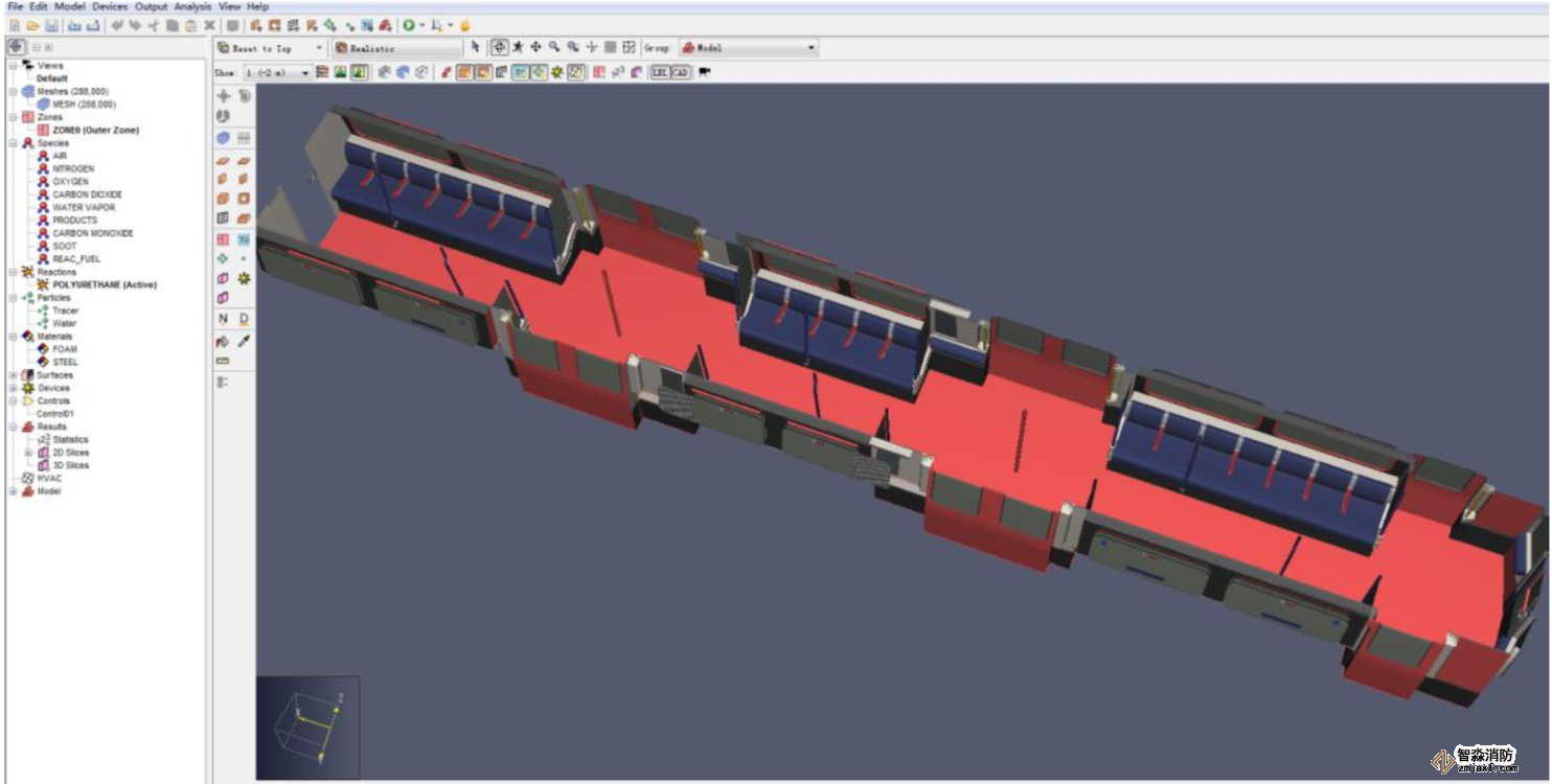 列車火災(zāi)與疏散模擬,使用軟件Pathfinder+PyroSim
