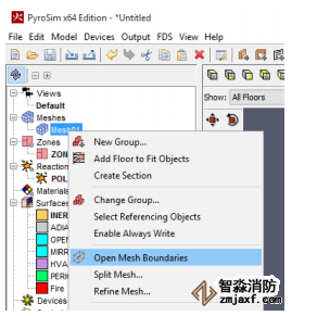 我們希望網的側面和頂部對氣流開放。這是通過在這些邊界上創建開放曲面來實現的。PyroSim可以自動為網格的全部邊界執行此操作。