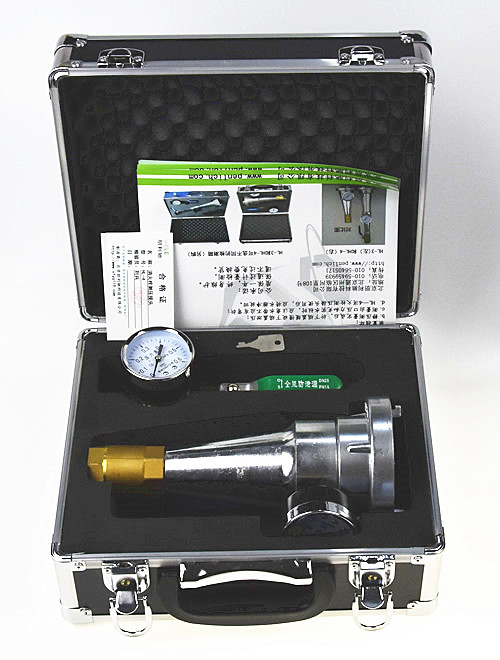 (2).將帶有壓力表一側連接到水噴淋末端(如末端為外絲可直接與本裝置連接,如末端為內絲需安裝變絲);