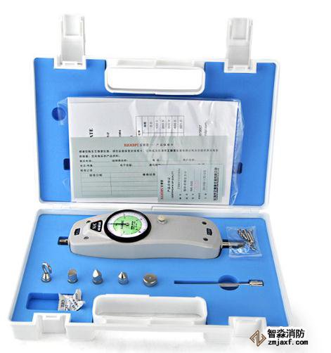 測力計量程:50N~500N;精度:0.5%用于檢查消防水帶的單位長度質量,適用于測量排煙防火閥手動開啟的最大操作力,測量開啟排煙閥的拉力,檢漏裝置測試;閉門器開啟/關閉力矩的測...利用金屬的彈性制成標有刻度用以測量力的大小的儀器,謂之“測力計”,圖23-1。測力計有各種不同的構造形式,但它們的主要部分都是彎曲有彈性的鋼片或螺旋形彈簧。當外力使彈性鋼片或彈簧發生形變時,通過杠桿等傳動機構帶動指針轉動,指針停在刻度盤上的位置,即為外力的數值。