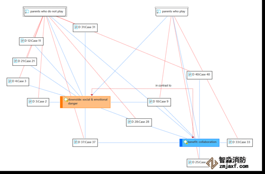 例如,將代碼鄰近添加到文檔節(jié)點或文檔組節(jié)點允許創(chuàng)建基于案例的網(wǎng)絡(luò)。您可以提出以下問題:哪些代碼已應(yīng)用于哪個文檔(或文檔組)。ATLAS.ti在代碼和它們出現(xiàn)的文檔(文檔組)之間畫了一條藍線。