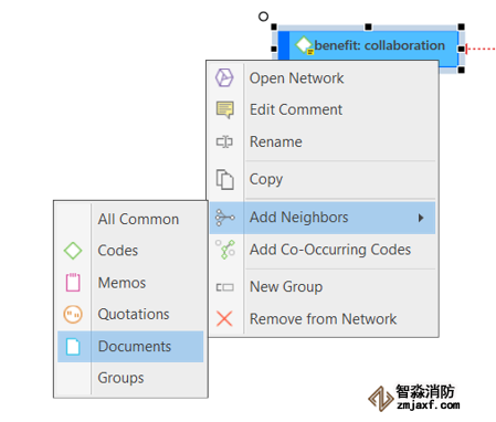 圖12:向ATLAS.ti網(wǎng)絡(luò)中的代碼節(jié)點添加文檔(Windows和Mac版本9.1)