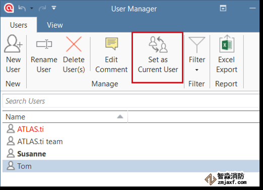 圖18:在用戶管理器中設(shè)置當前用戶(ATLAS.ti 9.1版Windows)