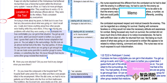 如果您復(fù)制引用并將其粘貼到編輯器中,無論是ATLAS.ti中的注釋字段或備忘錄,還是ATLAS.ti之外的Word文檔,也會添加此引用的引用。參考文獻包括:引用編號、位置和文檔名稱。例如,如果您想在報告中包含關(guān)鍵引用,則將引用復(fù)制到備忘錄中很有用。