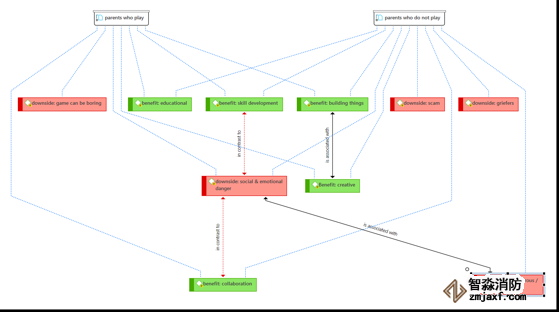 如果您通過包含文檔組向網(wǎng)絡(luò)添加更多信息,您可以查看受訪者屬于哪些組。與不玩游戲的父母相比,自己玩游戲的父母似乎不太擔心。