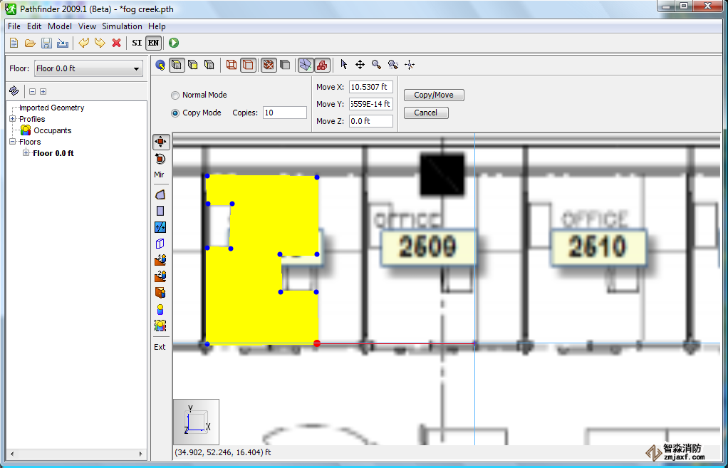 現(xiàn)在,我們將復(fù)制2號(hào)辦公室。選擇2號(hào)辦公室,然后在工具工具欄中單擊復(fù)制/移動(dòng)對(duì)象