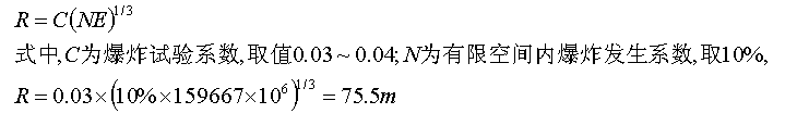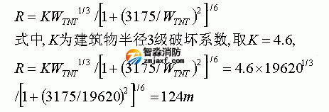 財產損失指在沖擊波作用下建筑物半徑為3級破壞半徑,由下式確定: