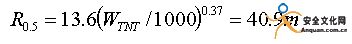 該區的人員如缺少防護,絕大多數人將遭受輕微傷害,少數人將受重傷或平安無事,其內徑為R1,外徑R2(m),△P為引起人員輕傷沖擊波峰值,其值為17