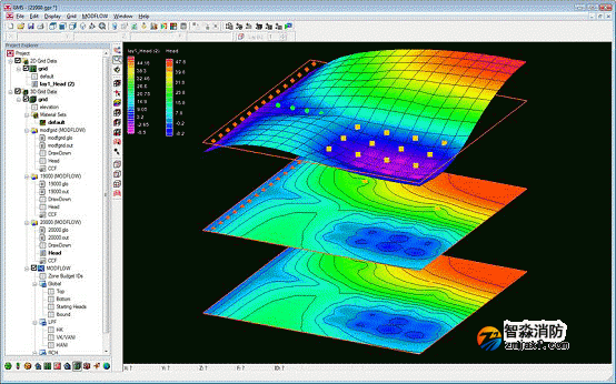GMS 軟件,全稱為(Groundwater modeling system),是由美國Brigham Young University 的環境模型研究實驗室和美國軍隊排水工程試驗工作站在綜合MODFLOW、FEMWATER、MT3DMS、RT3D、SEAM3D、MODPATH、SEEP2D、NUFT、UTCHEM 等已有地下水模型的基礎上開發的綜合性的、用于地下水模擬的圖形界面軟件。2007年4月,GMS軟件開始轉由美國的Aquaveo, LLC.公司進行研發及運營。GMS軟件在環境保護與評價、水資源利用與管理、建筑、采礦等行業廣受歡迎,其操作界面由下拉菜單、編輯條、常用模塊、工具欄、快捷鍵和幫助條六部分組成,截止至2017年01月,GMS軟件已經至10.2版本。