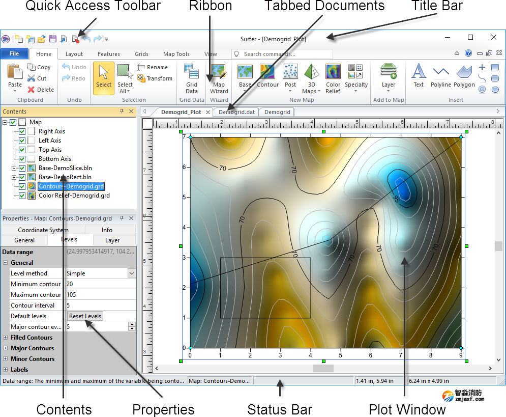 Surfer軟件,是美國Golden Software公司的繪圖軟件,是當前行業內、的等值線圖和三維文體圖形繪圖軟件。Surfer廣泛應用于地質學、地理學、農學、氣象學、水文學等相關學科,大多用于變量數據的分析、插值和圖形繪制。截止至2017年01月,Surfer軟件已經發行了V14的版本。