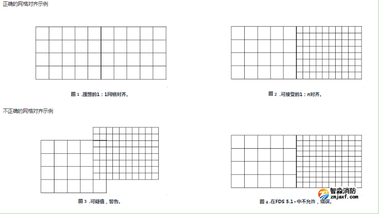 如《 FDS用戶指南》(McGrattan et al.2019)所述,設置多重網格計算時還應遵循以下經驗法則: