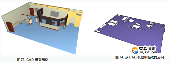 下面是一個3D CAD模型的例子,圖73和從中提取的一個房間圖74。